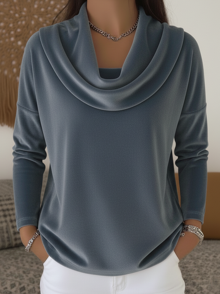 優美なドレープ: ふんわり流れる襟元が上品で女性らしい印象に。